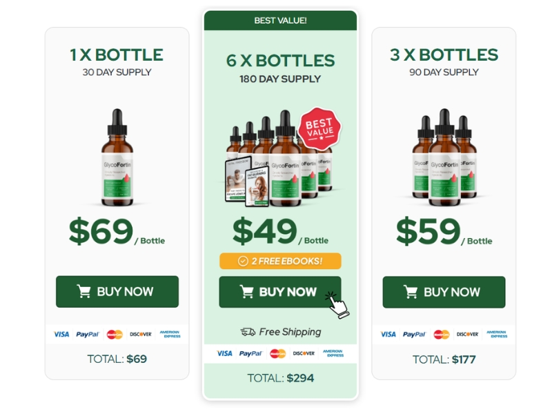 GlycoFortin is competitively priced, with various purchasing options available. Single bottles are priced at $69, while bulk orders provide significant savings. Customers can order three bottles for $177 or six bottles for just $294, which also includes two free bonuses and free shipping.