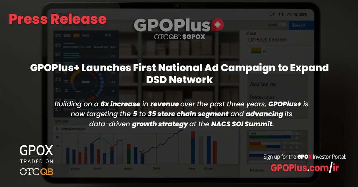 LAS VEGAS, April 9, 2026 (Newswire.com) - GPO Plus, Inc. (OTCQB:GPOX), an AI-powered distributor modernizing the Direct Store Delivery (DSD) model for gas stations and convenience stores, today announced the launch of its first national digital advertising campaign targeting chain-level decision makers. Concurrently, GPOX announced its upcoming participation in the NACS State of the Industry (SOI) Summit, reinforcing its commitment to a data-driven growth strategy.