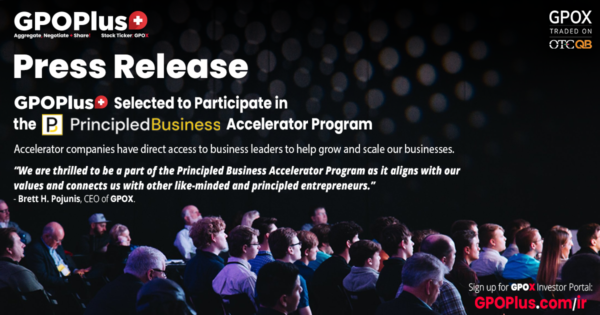 "We are thrilled to be a part of the Principled Business Accelerator Program as it aligns with our values and connects us with other like-minded and principled entrepreneurs," said Brett H. Pojunis, CEO of GPOX. Pojunis continued, "This opportunity provides GPOX unprecedented access to collaborate with business leaders who have built multi-billion dollar companies. We look forward to leveraging the accelerator's mentorship and network to help us grow and scale our business!