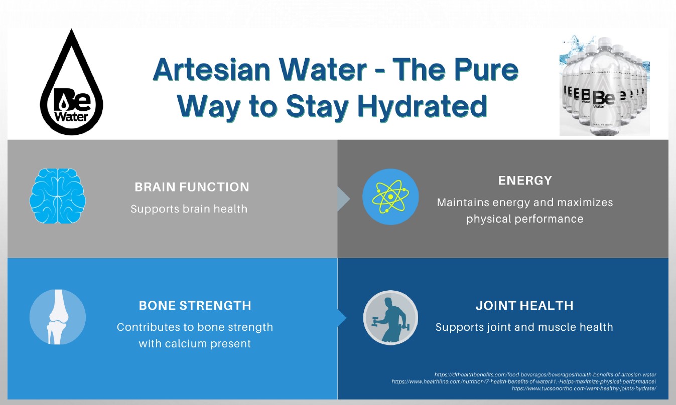 Be Water™ Retail Bottles (16.9 oz.) - Artesian-sourced, Made in the USA bottled water available nationwide through retailers and direct delivery.