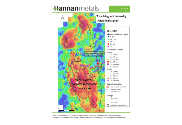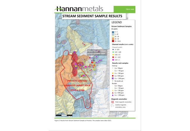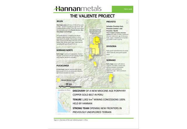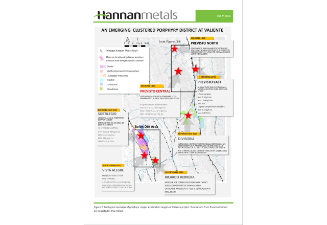 VANCOUVER, BC, May 22, 2024 (Newswire.com) - ("Hannan" or the "Company") (TSXV:HAN)(OTC PINK:HANNF) is pleased to announce that a significant copper-gold porphyry discovery has become evident at the Previsto Central prospect within the 100%-owned Valiente Project in Peru (Figures 1 and 2).