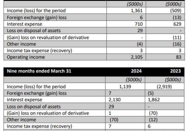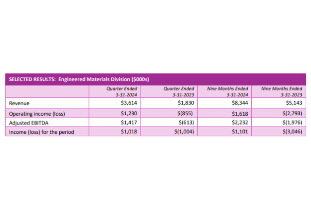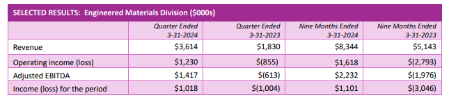 Net income for the nine months ended March 31, 2024 was $1.14 million ($0.01 per share) on sales of $27.0 million compared to a loss of $2.92 million ($0.03 per share) on sales of $21.2 million in the comparative period, representing a marked turnaround.