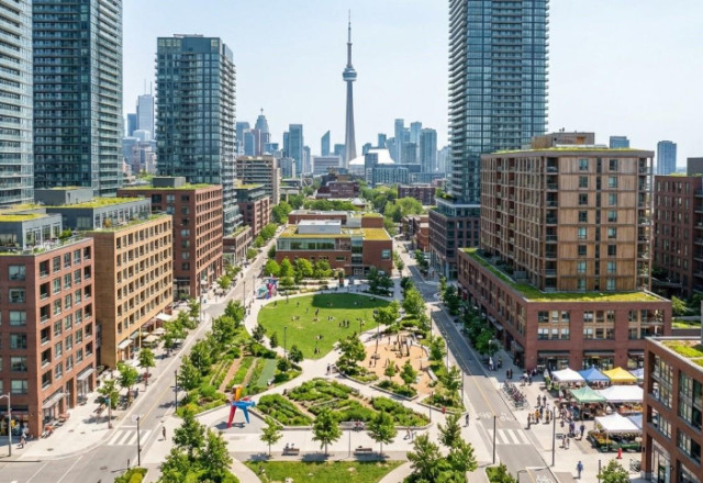 A vibrant mixed-use, mixed-income neighbourhood in Toronto - the goal of well-designed inclusionary zoning policy.