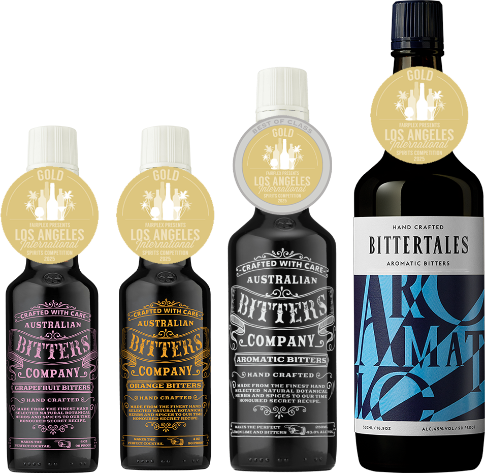 Australian Bitters Company brand wins Gold for: Best of Class in Aromatic Bitters, Grapefruit Bitters, and Orange Bitters