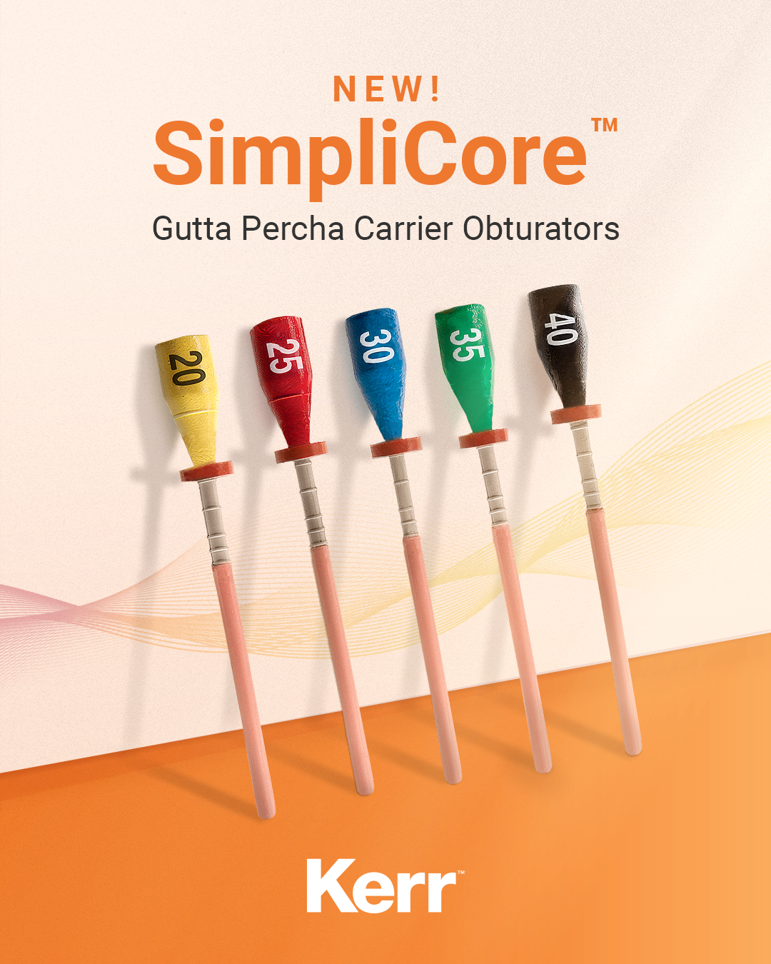 BREA, Calif., September 15, 2025 (Newswire.com) - Kerr is excited to announce the launch of SimpliCore™, a carrier-based obturator designed to simplify obturation and streamline clinical workflows. SimpliCore features a solid gutta percha core that allows for easier retreatment and the creation of post spaces, just like traditional gutta percha. The synthetic core material is highly radiopaque and clearly identifiable in dental imaging procedures.