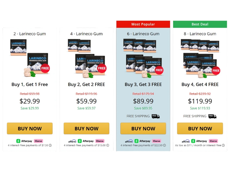 Larineco Remineralizing Gum is offered in several attractive pricing bundles, catering to different needs and preferences: