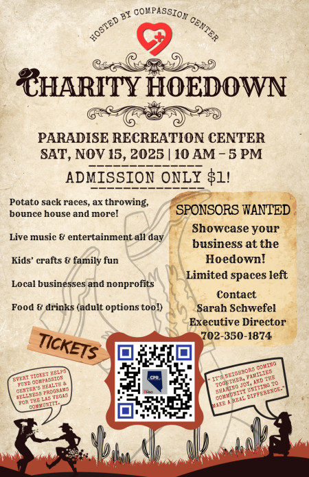 LAS VEGAS, October 7, 2025 (Newswire.com) - Get ready to dust off your cowboy boots and grab the whole family for an unforgettable day of fun at the Compassion Center's Coalition for Patient Rights Inaugural Charity Hoedown, happening Saturday, November 15, 2025, from 10 a.m. to 5 p.m. at Paradise Recreation Center.