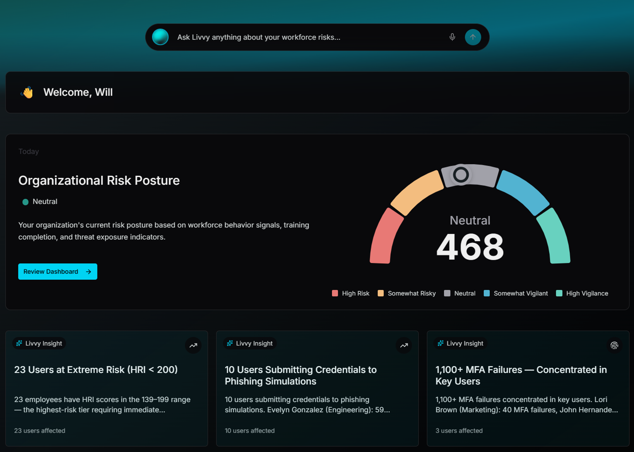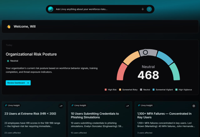 At the core of the platform is Livvy, an always-on AI risk intelligence engine that analyzes more than 300 behavioral, identity, and threat signals to identify and resolve workforce risk.