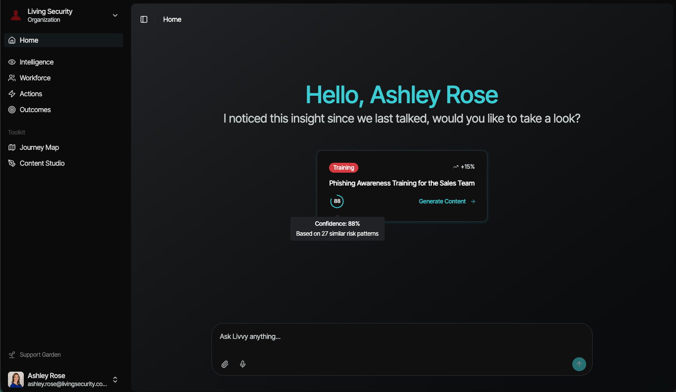 Livvy's launch signals a new chapter in HRM and a leap forward from legacy security awareness or bolt-on AI tools. By embedding AI-native intelligence directly into the core of the platform, Living Security enables faster decision-making, increased automation, and measurable business value.