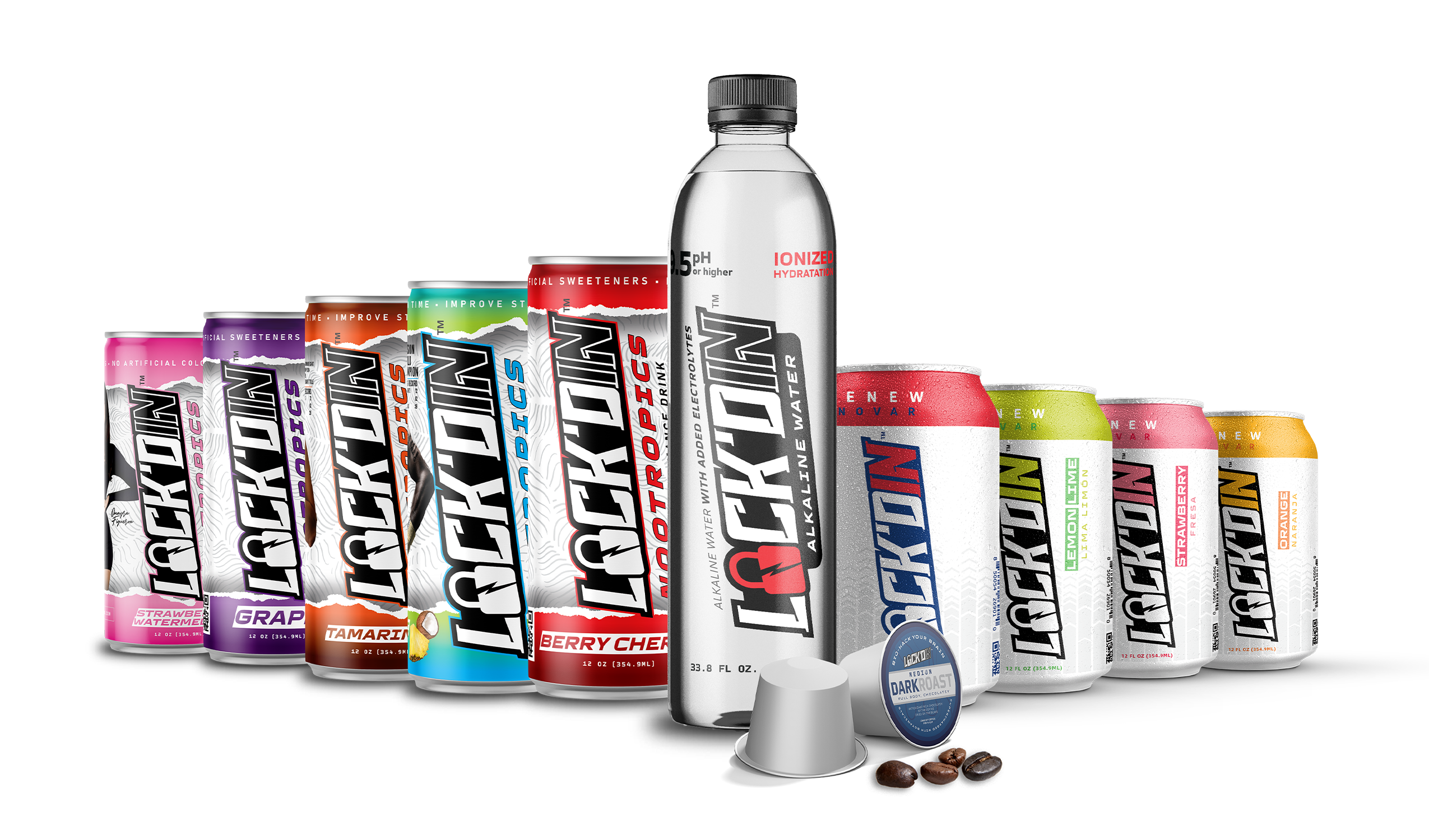 LOCK'DIN™ Nootropics Functional Performance Beverage provides smooth, sustained energy without the crash, using organic caffeine sources and formulated without artificial colors, artificial flavors or sugar. Naturally sweetened with plant-based stevia, the drink is available in Berry Cherry, Grape, Pineapple Coconut, Strawberry Watermelon and Tamarindo.