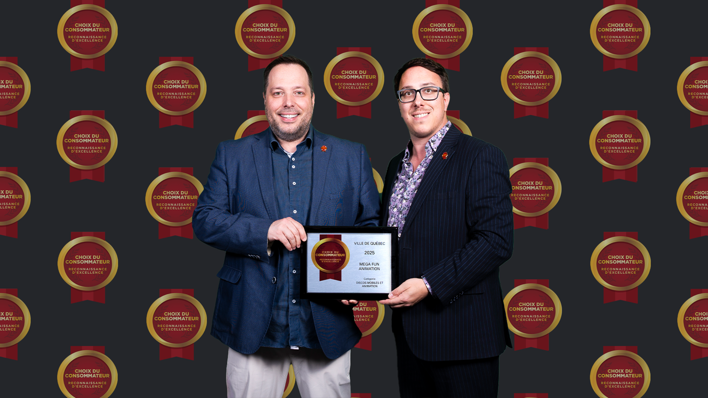Méga Fun Animation Reconnue par le Prix Choix du Consommateur 2025 dans la Catégorie Discos Mobiles et Animation à Québec
