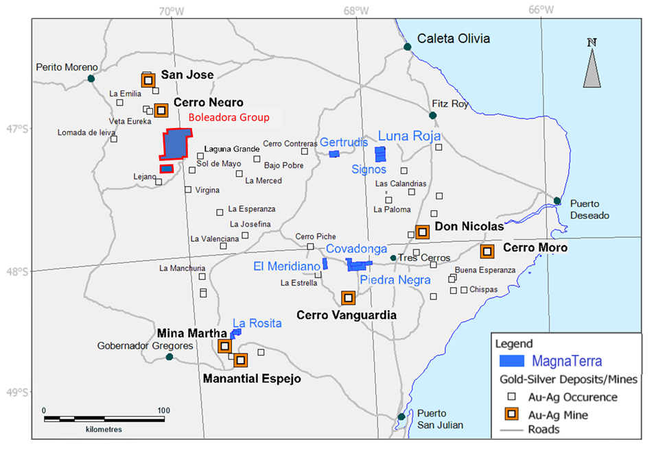 , March 26, 2024 (Newswire.com) - Magna Terra Minerals Inc. (the "Company" or "Magna Terra") (TSX-V:MTT) is pleased to announce through its 100% owned Argentine subsidiary Atala Resources S.A. ("Atala"), that Oroplata S.A. ("Oroplata"), a subsidiary of Newmont Corporation ("Newmont"), has provided a detailed summary report of its 2023 exploration program undertaken to date on the Boleadora Project ("Boleadora"). In addition, Oroplata has made the third anniversary option payment of US$150,000 to Atala under the option agreement (see details below). Boleadora encompasses ~55,000 hectares in 12 exploration licenses located 17 kilometres southeast along strike from Newmont's Cerro Negro mine along the Margaritas-Boleadoras Corridor, the host to both projects located in Santa Cruz Province, Argentina. (Figure 1).