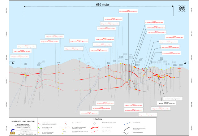 Akiba Leisman, CEO of Mako states: "El Golfo is shaping up to be a significant new discovery. High grades over widths similar to or greater than what we have been mining to the north since 2020 are prevalent. El Golfo, located 1km to the southwest of Las Conchitas contains lithologies that are essentially identical to what we have been mining at San Albino and Las Conchitas for the last six years. El Golfo has now been extended to 630 meters of strike and 305 meters of dip, and remains open in all directions. Furthermore, the receipt of underground mining permits at Las Conchitas will allow us to begin the development of two underground adits, with the ability to mine 150-250 tonnes per day for the next 6 years in addition to our open pit mining operations."