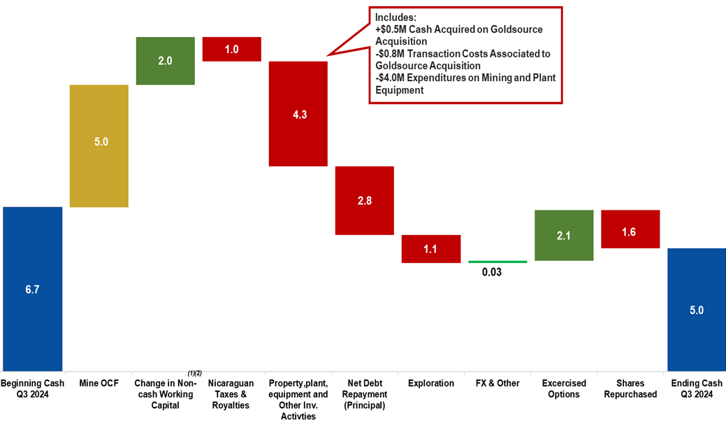 Q3 2024 - Mine OCF Calculation and Cash Reconciliation (in $ millions)
