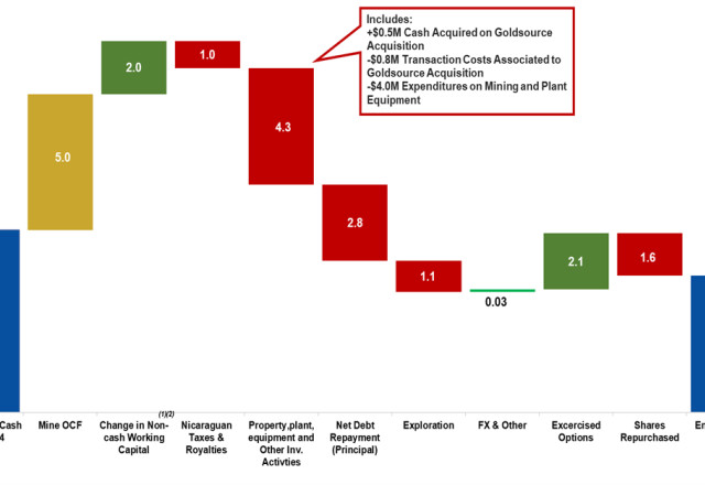 "Mine OCF" represents operating cash flow, excluding Nicaraguan taxes and royalties, changes in non-cash working capital and exploration expenses.