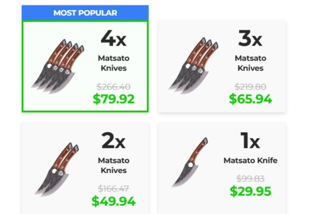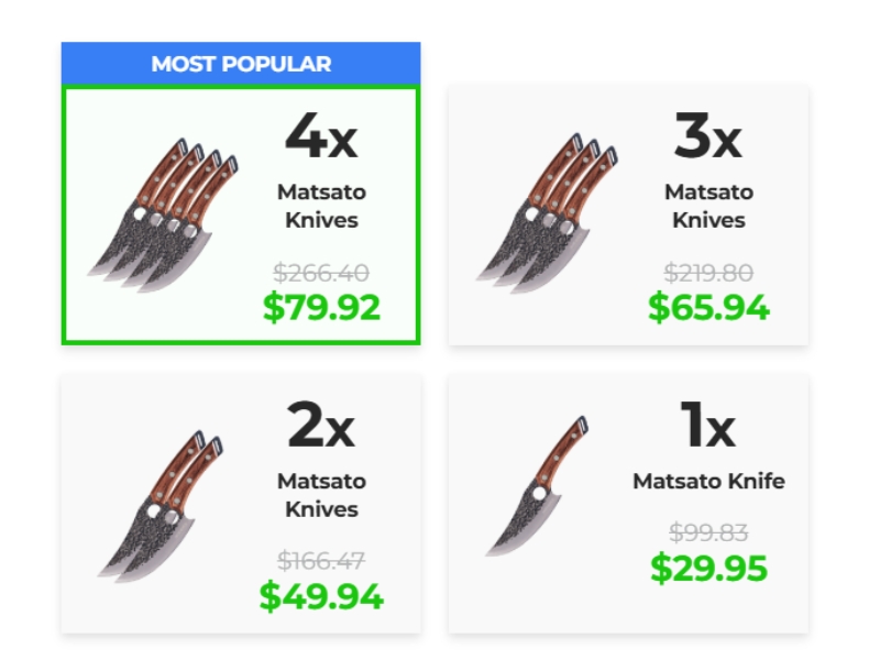 4 x Matsato Knives: $79.92 (Total savings of $266.40)