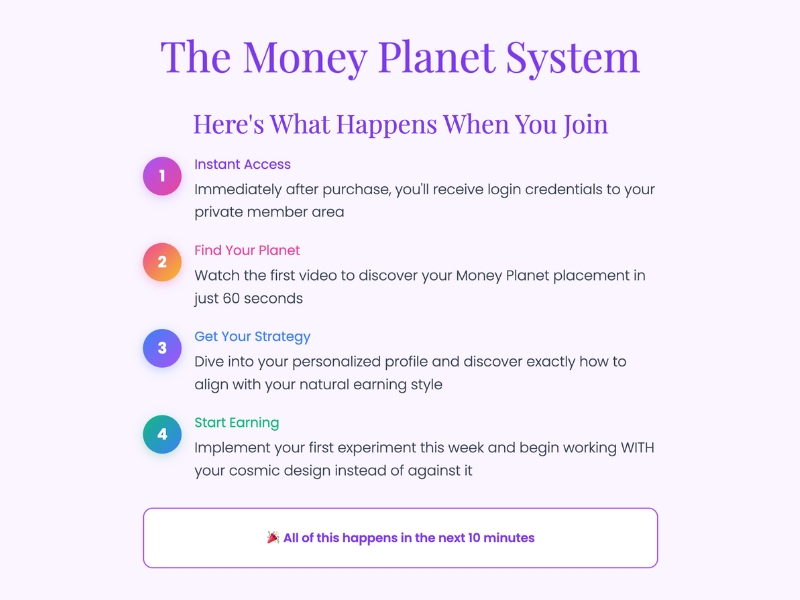 Money Planet simplifies astrology into a clear process anyone can follow. You don't need prior knowledge or software to find your planetary placement. The course explains each type in plain terms and connects it directly to earning habits. Many users appreciate how fast they grasp the core idea and how accurately the report reflects their natural tendencies.