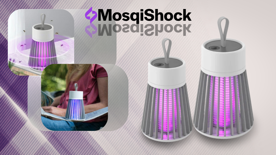 MosqiShock is a portable, USB-rechargeable consumer insect-control device that, according to the brand's product page, uses UV LED light to attract flying insects and an electric coil to eliminate them on contact. The brand markets it for both indoor and outdoor use - bedrooms, patios, campsites, vacation rentals, and anywhere else flying insects are a problem.