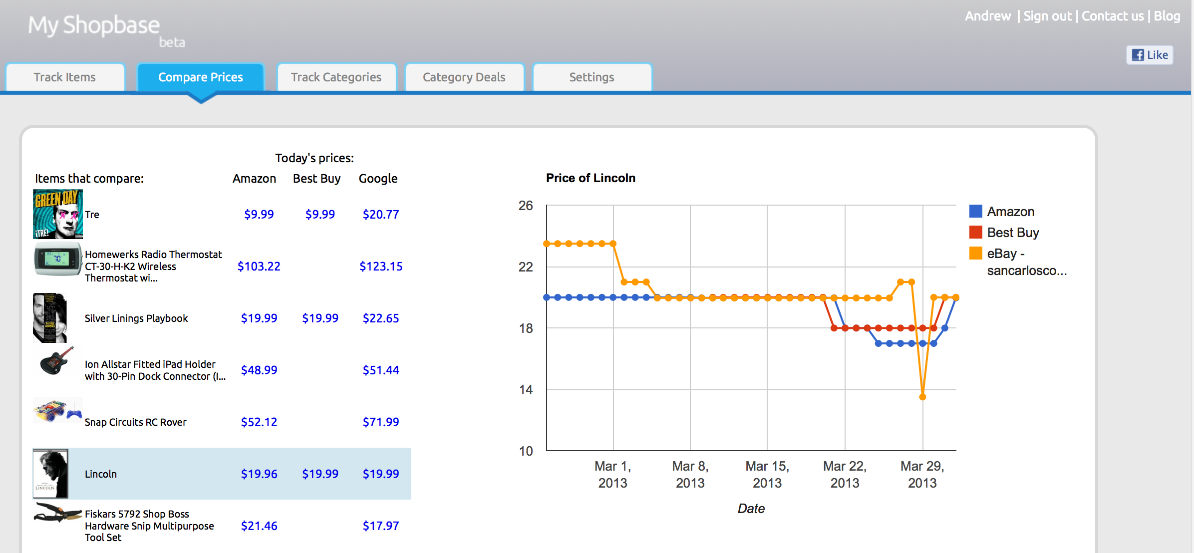 Online, April 2, 2013 (Newswire.com) - Prices on items online can rapidly change and sometimes change with wild swings of over 80% in one day. Myshopbase.com, based in Campbell California, recently launched its price comparison and tracking application to help online shoppers understand price trends and make more informed purchase decisions. Myshopbase.com is a free analytic tool where shoppers can select items or favorite categories and get price alerts when prices change. Shoppers can also compare prices and find deals across major internet retailers such as Amazon.com, Best Buy, Ebay Inc., Edmunds.com and Google Shopping.