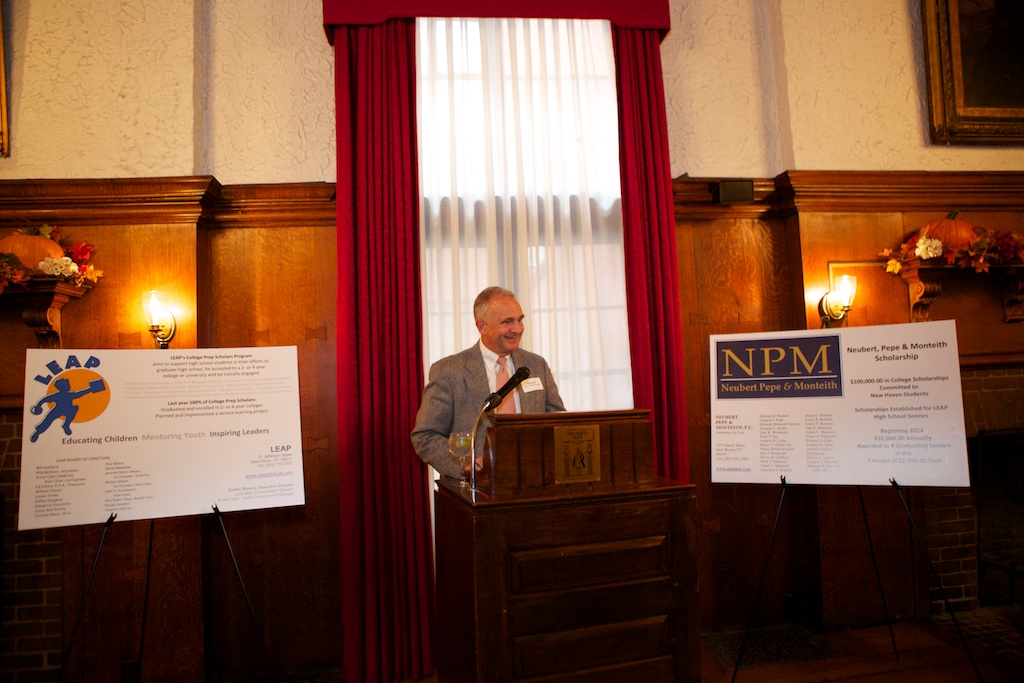 Online, October 16, 2013 (Newswire.com) - The New Haven, Connecticut law firm of Neubert, Pepe & Monteith, P.C. has established the Neubert, Pepe & Monteith Scholarship for the benefit of college-bound students who are active in the New Haven Connecticut based organization Leadership, Education and Athletics in Partnership, Inc. (LEAP). The scholarship awards of $2,500.00 or more for up to 4 students each year will be funded by Neubert, Pepe & Monteith in the amount of $10,000.00 per year for a period of ten years for a total amount of $100,000.00. The Neubert, Pepe & Monteith Scholarship is intended to assist New Haven high school seniors pursue their college education, providing financial support to those who may otherwise have significant difficulty in securing funds for a college education.