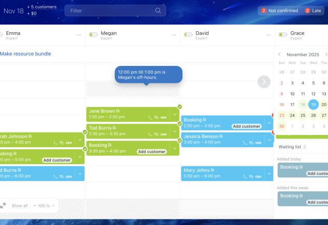 Timely Updates: Alerts for new bookings, confirmation requests, scheduled reminders, and late appointments are sent to staff, keeping your team informed.