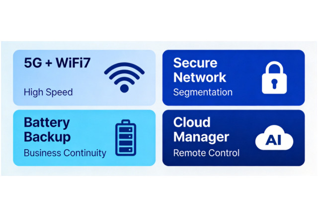 The CR602 5G router was developed to address these challenges by providing carrier-grade 5G connectivity combined with enterprise networking features in a compact device designed for retail environments. Unlike consumer-grade routers or mobile hotspots, the CR602 delivers stable high-speed networking and built-in business continuity capabilities tailored for small commercial deployments.