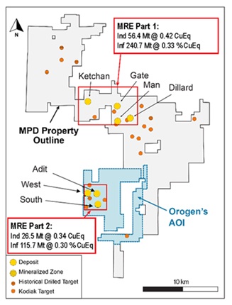 VANCOUVER, BC, December 11, 2025 (Newswire.com) - (TSXV:OGN)(OTCQB:OGNNF) Orogen Royalties Inc. ("Orogen" or the "Company") is pleased to note Kodiak Copper Corp.'s (TSX.V:KDK) ("Kodiak") announcement of an initial Mineral Resource Estimate ("MRE") on Kodiak's South, West and Adit deposits forming the southern area of the greater MPD copper-gold porphyry project ("MPD") in British Columbia. Orogen holds a 2% net smelter return ("NSR") royalty on the southern area of the MPD project subject to a 0.5% buydown for C$2 million.