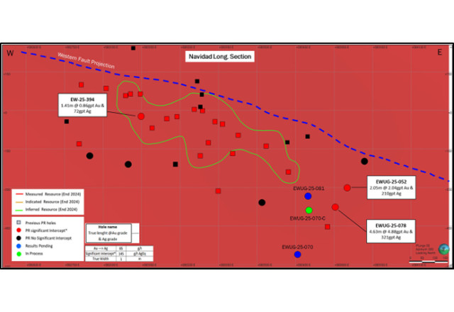 Exploration drilling at the Navidad area includes EWUG-25-078 grading 5.8 grams per tonne ("g/t") gold and 126 g/t silver over 8.0 metres and 4.88 g/t gold and 50 g/t silver over 4.6 metres (true width)