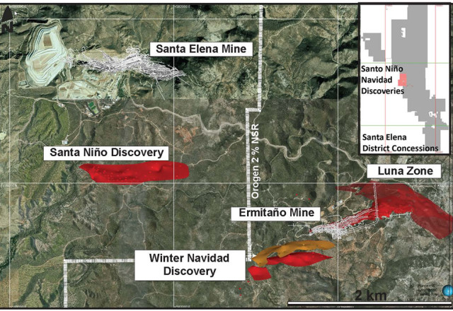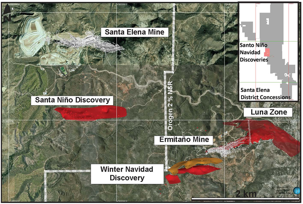 Orogen holds a royalty interest on the approximately 167 square-kilometre Ermitaño mining concession, located in Sonora, Mexico. Ermitaño is contiguous with the Santa Elena mining claims both of which are owned and operated by First Majestic. (Figure 1). Orogen's area of interest contains the producing Ermitaño deposit, the Luna and Aitana veins, and the recently discovered Navidad/Winter vein systems.