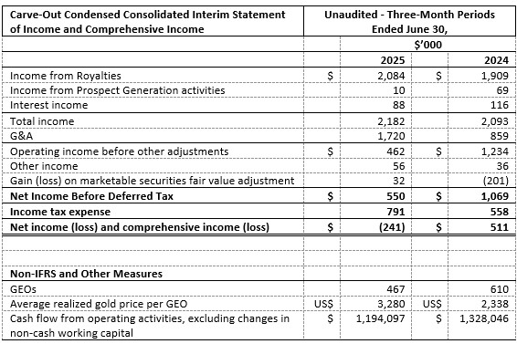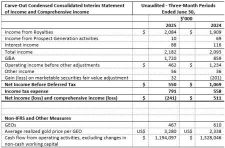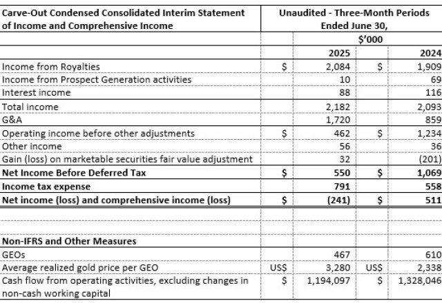 Orogen Royalties Reports Q2 2025 Financial Results Based on Carve-out Financial Statements