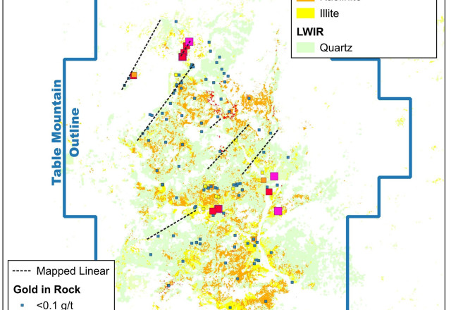 The property is focused on a four by two-kilometre alteration cell composed of kaolinite and weakly crystalline illite consistent with the high levels of epithermal systems (Figure 2). The alteration cell is notable for the absence of historical work including drilling, prospect pits and legacy claim posts.