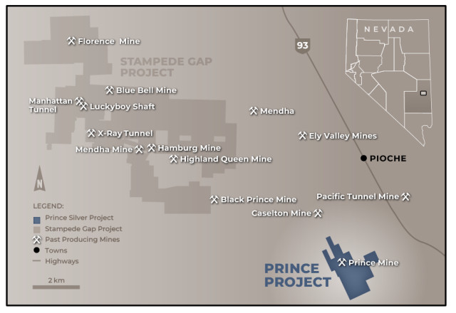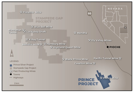 The Pioche mining district is one of Nevada's most well-known polymetallic camps, and historical records highlight the importance of the past producing Prince Mine within the camp. Previous production from the historic Prince Mine totaled 1.12 million tonnes grading 4.5% zinc, 100 grams per tonne ("g/t") silver, 2.8% lead, and 0.5 g/t gold, (Gemmill, 1970), mined from underground high grade sulphide replacement zones within limestone and near-surface oxidized manganese-rich material.