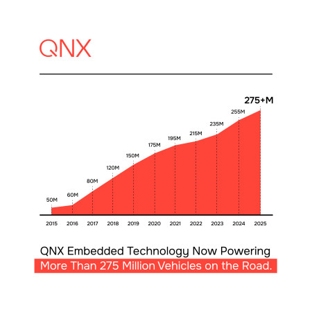 "Automakers rely on QNX because we deliver what matters most: safety, security, and proven reliability," said John Wall, President, QNX. "With more than 275 million vehicles already running on QNX technology, we're just getting started. As software becomes the backbone of modern mobility, QNX will continue to expand its footprint - powering the next generation of connected and autonomous vehicles."