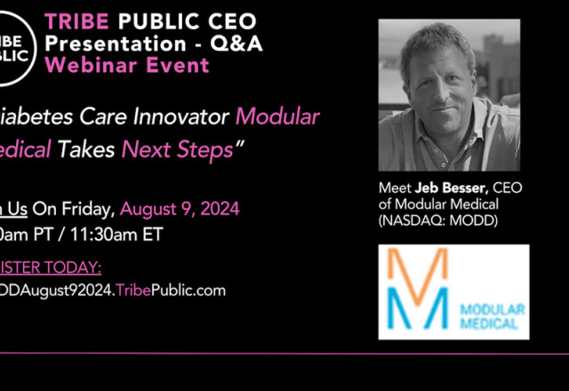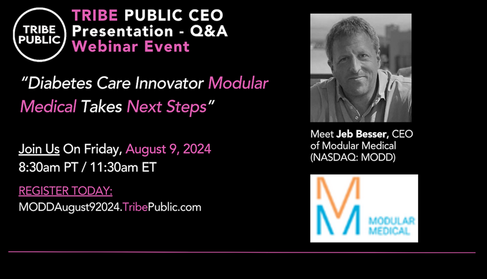 Registration is Now Open for Tribe Public’s Webinar Event "Diabetes Care Innovator Modular Medical Takes Next Steps" Featuring Modular Medical CEO on Friday, August 9, 2024