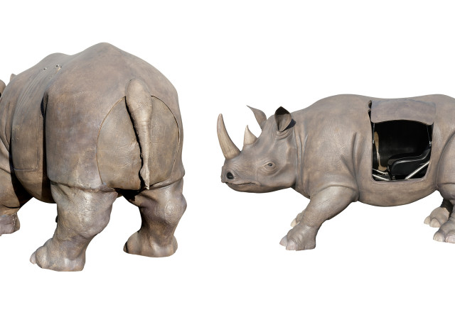 Today, the rhino stands as the centerpiece of what many consider the film's most iconic sequence, and we don't plan to keep this legendary prop tucked away in our warehouse. The piece deserves an audience (and maybe even a photo op) - no ifs, ands, or butts about it.