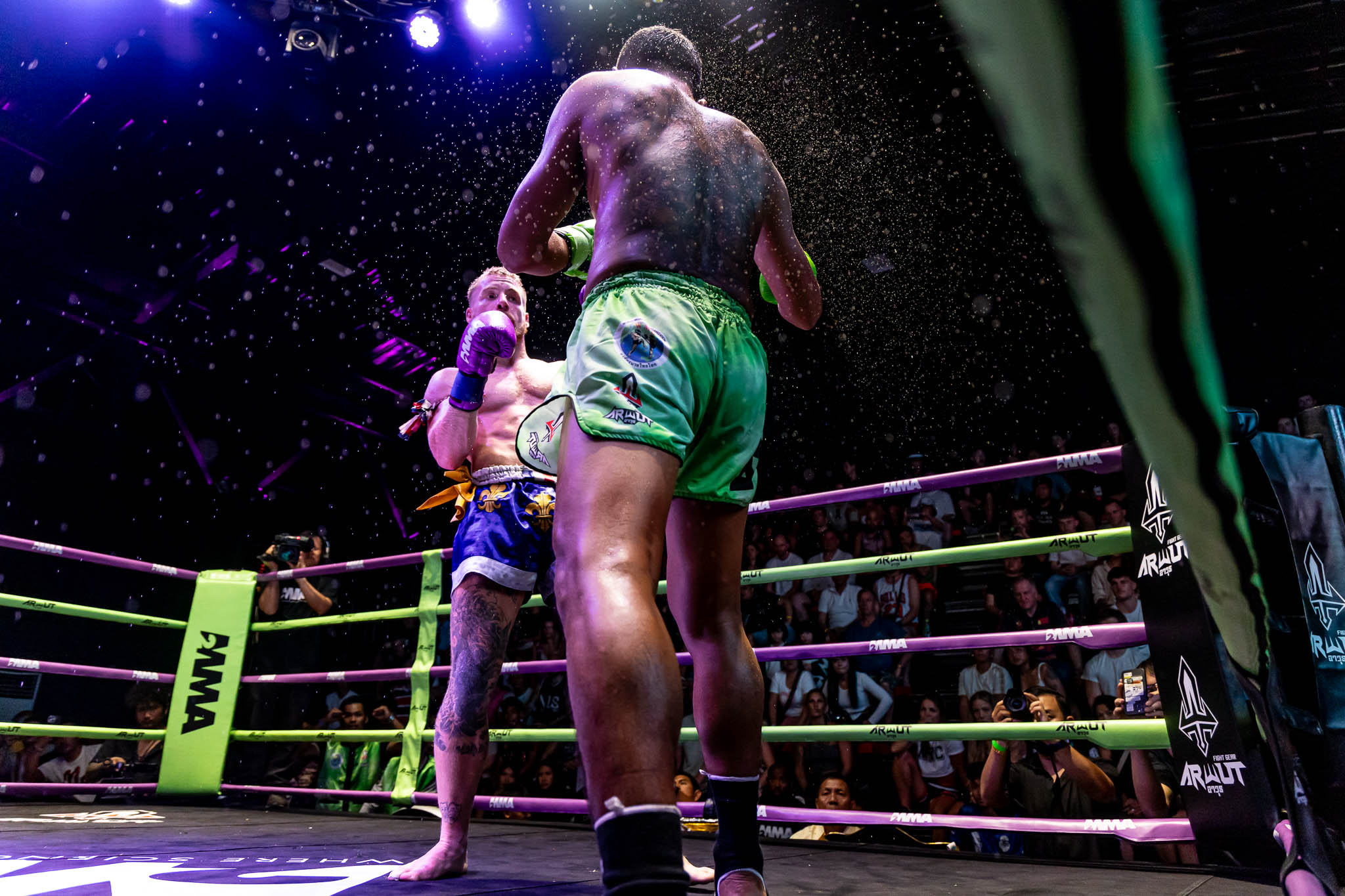 M2MMA 1 was highly anticipated for athletes and fans worldwide during the months building up to the event, with final festivities kicking off a week prior, marking the beginning of an exhilarating fight week. The M2MMA team embarked on a journey across the Island of Phuket, visiting the prestigious gyms where the M2MMA athletes prepared for battle. During these visits, the team engaged with the fighters, capturing behind-the-scenes promotional content that spotlighted the local heroes and the intense rivalries on the island. This week-long prelude to the event underscored the athletes' quest for bragging rights. Yet, it also highlighted their unity and respect for each other and the sport, setting the stage for an unforgettable competition.