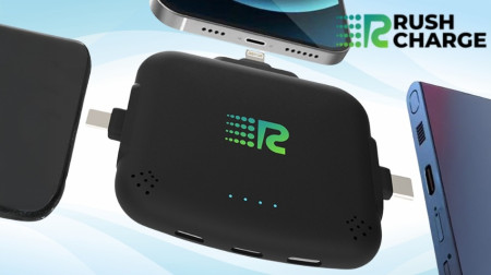 Recharging the Rush Charge Universe Itself - An Important Note. Most traditional power banks require a separate cable to recharge the power bank itself, which partially defeats the purpose of carrying a portable charger for convenience. The Rush Charge Universe's recharging method is described differently depending on which company page you reference. The GetRushCharge.com promotional offer page describes recharging via a built-in wall/AC plug that folds out and connects directly to a standard wall outlet. The RushCharge.com brand store site and FAQ page describe recharging via any standard cable - Lightning, USB-C, or Micro-USB. This discrepancy may reflect different product versions, updated hardware, or different descriptions of the same feature. Buyers should confirm the specific recharge method on the version of the product page they are purchasing from before ordering, and verify the recharge capability upon receipt.