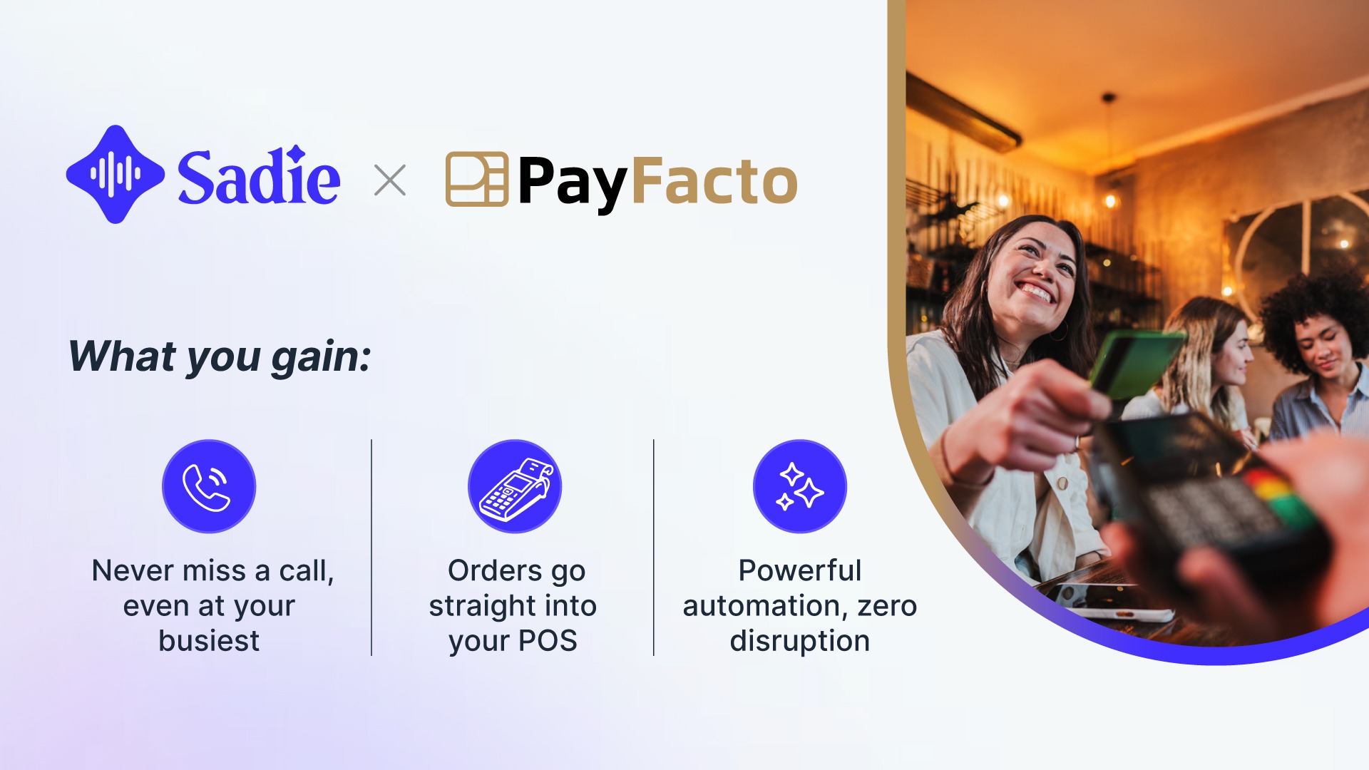 Sadie AI's voice solution will be available across Payfacto's hospitality POS lineup, reinforcing both companies' shared commitment to innovation, reliability, and restaurant success.
