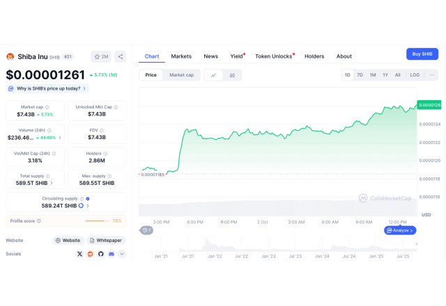 DUBAI, UAE, October 2, 2025 (Newswire.com) - Big money is moving into meme coins again, but this time, the real story might not be Shiba Inu. On October 2, Shiba Inu (SHIB) traded at $0.00001260, up 5.8% in 24 hours : CoinMarketCap. Analysts are predicting a 45% to 138% rally, fueled by whale accumulation and Shibarium growth.