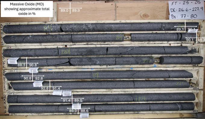 Figure 2; Core Photo of FT-25-05 216.6m - 227.9m as an example of the Massive Oxide Zone.