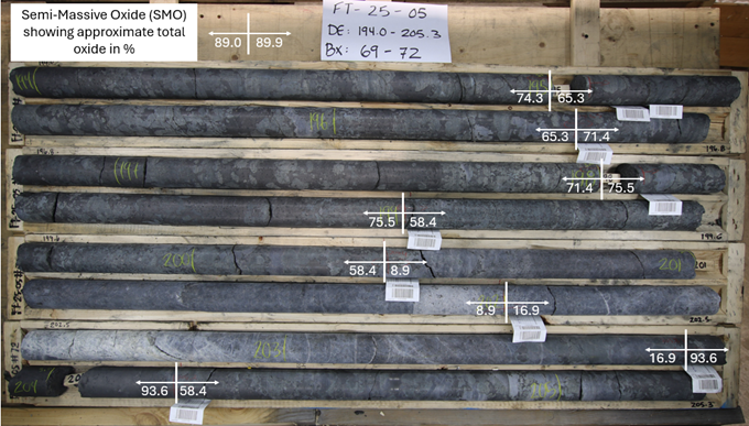 Figure 3; Core Photo of FT-25-05 194m - 205.3m as an example of the Semi-Massive Oxide Zone.