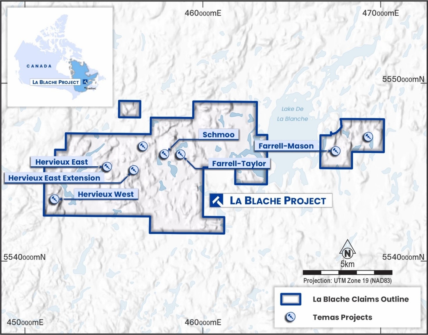 VANCOUVER, British Columbia, March 12, 2026 (Newswire.com) - Temas Resources Corp. (" Temas " or the " Company ") (ASX:TIO)(CSE:TMAS)(OTCQB:TMASF)(FSE:26P0) is pleased to report assay results from the nine (9) HQ diamond drill program completed in the late 2025 at its La Blache Project in Quebec, Canada.