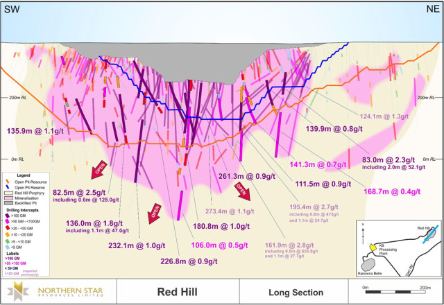 The Red Hill gold deposit is located 3.5km east of Northern Star's Kanowna Belle mine and processing plant and 22km north-east of Northern Star's Kalgoorlie Consolidated Gold Mines Operations (" KCGM "), which includes the Fimiston processing plant in Western Australia. KCGM and the Fimiston plant are currently the subject of a major brownfield expansion project (2) by Northern Star. The A$1.5 billion KCGM Mill Expansion Project is expected to increase processing capacity from 13Mtpa to 27Mtpa. The Red Hill project was historically mined as an open pit operation between 2001 and 2007, producing approximately 467,000oz.