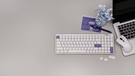 Powered by Epomaker Low-Profile Mint switches, this keyboard is engineered for users who value both speed and comfort. The shortened actuation distance enables quicker response times, making it ideal for fast-paced typing tasks. Its ergonomic low-profile design naturally positions the wrists at a comfortable angle, helping reduce strain during long hours of work. Adjustable rear kickstands are also included, allowing users to fine-tune the keyboard's height according to their preferred typing posture.