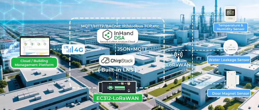 By combining LoRaWAN wireless technology with the EC312-LoRaWAN industrial gateway, smart buildings can deploy a low-power, wide-coverage, and easy-to-install environmental monitoring solution without complex cabling.