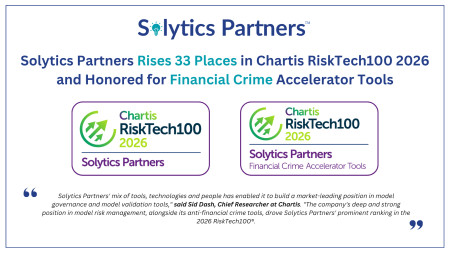 "Solytics Partners' strong performance in RiskTech100® reflects the firm's scalable architecture, analytical depth, and growing influence in risk technology," said Sid Dash, Chief Researcher at Chartis Research. "Solytics Partners' mix of tools, technologies and people has enabled it to build a market-leading position in model governance and model validation tools. The company's deep and strong position in model risk management, alongside its anti-financial crime tools, drove Solytics Partners' prominent ranking in the 2026 RiskTech100®."