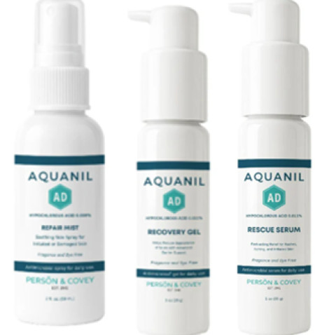 The Aquanil AD product line includes Aquanil AD Repair Mist, a soothing spray for irritated or damaged skin; Aquanil AD Recovery Gel, designed to help reduce the appearance of scars; and Aquanil AD Rescue Serum for relief from rashes, itching and irritation. Each product was specifically designed for sensitive or reactive skin.