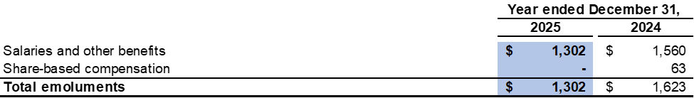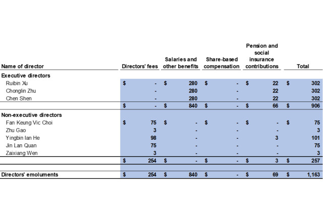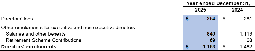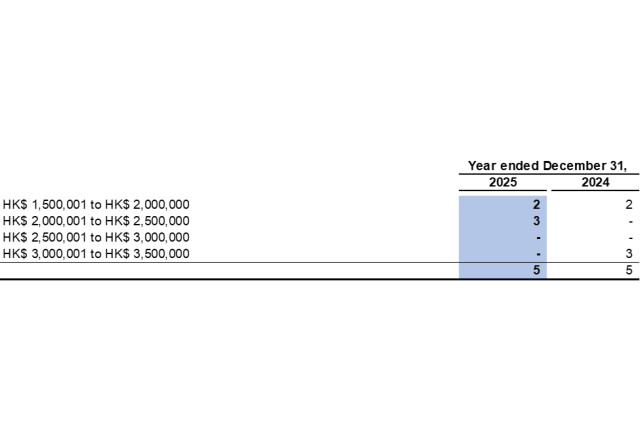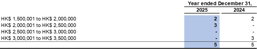 The five highest paid individuals included three directors of the Company for the year ended December 31, 2025 (2024: three directors). The emoluments of the five highest paid individuals are as follows: