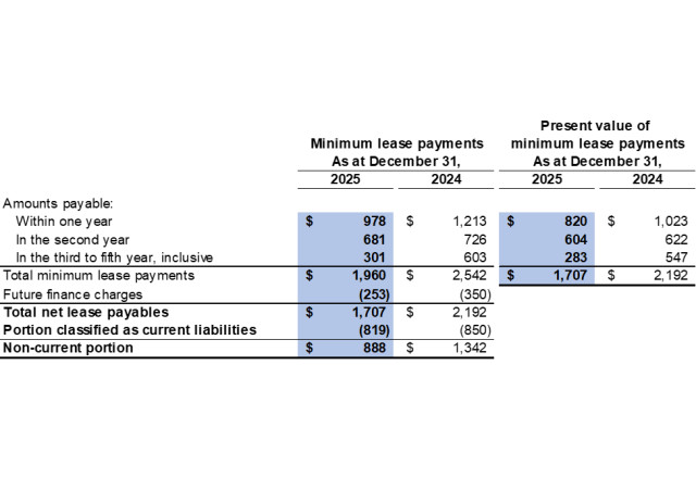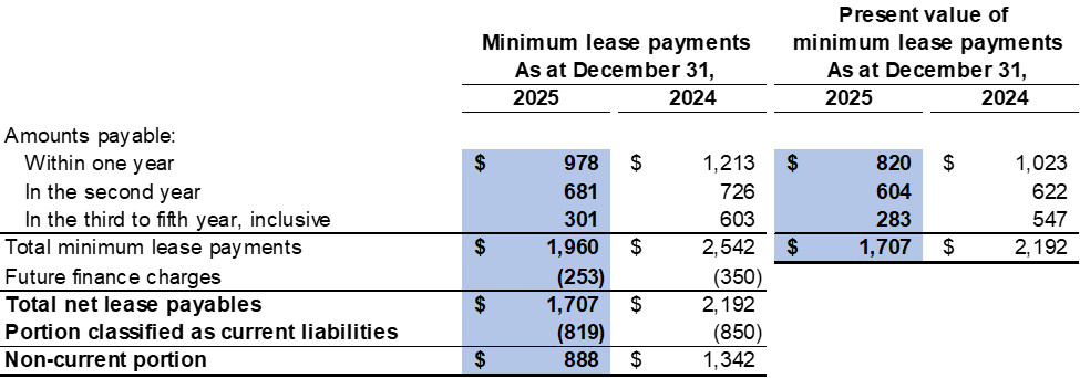 At December 31, 2025, the total future minimum lease payments and their present values were as follows: