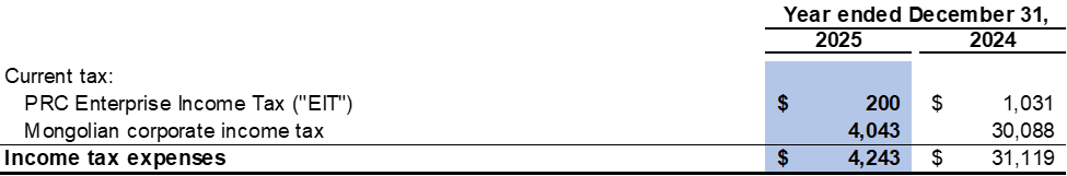 Forward-looking information is based on certain factors and assumptions described below and elsewhere in this press release, including, among other things: the current mine plan for the Ovoot Tolgoi mine; mining, production, construction and exploration activities at the Company's mineral properties; the costs relating to anticipated capital expenditures; the capacity and future toll rate of the paved highway; plans for the progress of mining license application processes; mining methods; the Company's anticipated business activities, planned expenditures and corporate strategies; management's business outlook, including the outlook for 2026 and beyond; currency exchange rates; operating, labour and fuel costs; the ability of the Company to raise additional financing; negotiating a constructive understanding and agreement with the Plenipotentiary Representative of the Mongolian Government; the anticipated royalties payable under Mongolia's royalty regime; the ability of the Company to settle the tax penalty payable of $26.5 million imposed by the MTA and a provision for additional late tax penalty of $19.0 million; the future coal market conditions in China and the related impact on the Company's margins and liquidity; the anticipated demand for the Company's coal products; future coal prices, and the level of worldwide coal production. While the Company considers these assumptions to be reasonable based on the information currently available to it, they may prove to be incorrect. Forward-looking statements are subject to a variety of risks and uncertainties and other factors that could cause actual events or results to differ materially from those projected in the forward-looking statements. These risks and uncertainties include, among other things: the uncertain nature of mining activities, actual capital and operating costs exceeding management's estimates; variations in mineral resource and mineral reserve estimates; failure of plant, equipment or processes to operate as anticipated; the possible impacts of changes in mine life, useful life or depreciation rates on depreciation expenses; risks associated with, or changes to regulatory requirements (including environmental regulations) and the ability to obtain all necessary regulatory approvals; the potential expansion of the list of licenses published by the Government of Mongolia covering areas in which exploration and mining are purportedly prohibited on certain of the Company's mining licenses; the Government of Mongolia designating any one or more of the Company's mineral projects in Mongolia as a Mineral Deposit of Strategic Importance; the Company's ability to successfully negotiate a constructive understanding and agreement with the Plenipotentiary Representative of the Mongolian Government; the risk that the Company is unable to successfully settle the tax penalty payable of $26.5 million imposed by the MTA and a provision for additional late tax penalty of $19.0 million (as described under section "Significant Events and Highlights" of this press release under the heading entitled " Additional Tax and Tax Penalty Imposed by the MTA"); possible impact of changes to the inputs to the valuation model used to value the embedded derivatives in the Convertible Debenture; the risk of the Company or its subsidiaries default under its existing debt obligations, including the Convertible Debenture, the 2026 March Deferral Agreement and the 2025 Bank Loan; the impact of amendments to, or the application of, the laws of Mongolia, China and other countries in which the Company carries on business; modifications to existing practices so as to comply with any future permit conditions that may be imposed by regulators; delays in obtaining approvals and lease renewals; the risk of fluctuations in coal prices and changes in China and world economic conditions; customer credit risk; cash flow and liquidity risks; risks relating to the Company's decision to suspend activities relating to the development of the Ceke Logistics Park project, including the risk that its investment partner may initiate legal action against the Company for failing to comply with the underlying agreements governing project development; risks relating to the ability of the Company to enhance the operational efficiency and the output throughput of the washing facilities at Ovoot Tolgoi and risks relating to the Company's ability to raise additional financing and to continue as a going concern. This list is not exhaustive of the factors that may affect any of the Company's forward-looking statements.
